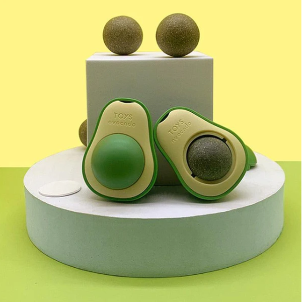 Brinquedo Para Gatos – Catnip em forma de abacate com bola giratória 360° com ingredientes naturais que aumentam o apetite, promovem a digestão e a limpeza dos dentes. Um brinquedo de gato para auto entretenimento.