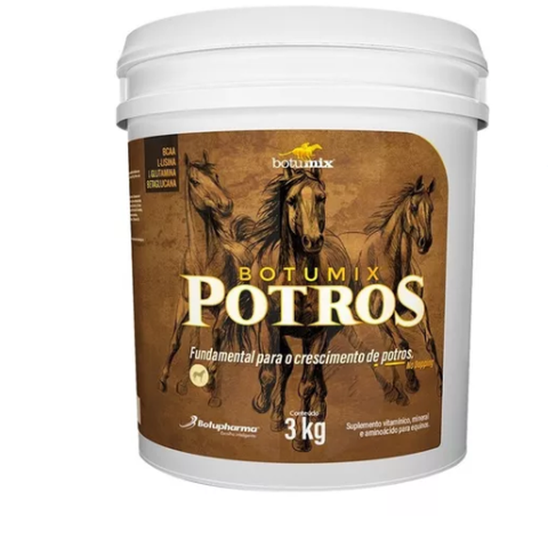 Suplementação de vitaminas, minerais e aminoácidos para potros em crescimento e desenvolvimento.