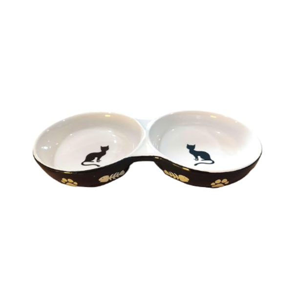 Comedouro e Bebedouro Duplo em Porcelana Importado - 150 ml para Gatos