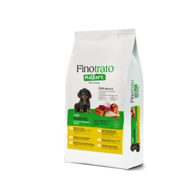 Alimento completo para cães filhotes de raças pequenas e médias.