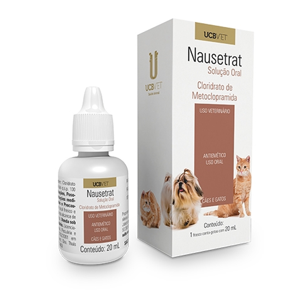 NAUSETRAT® Solução Oral é indicado para cães e gatos no controle de distúrbios digestivos. Possui atividade reguladora eletiva sobre o trato digestivo controlando náuseas, vômitos, meteorismo, espasmos pilóricos, soluço persistente, intolerância digestiva a medicamentos.