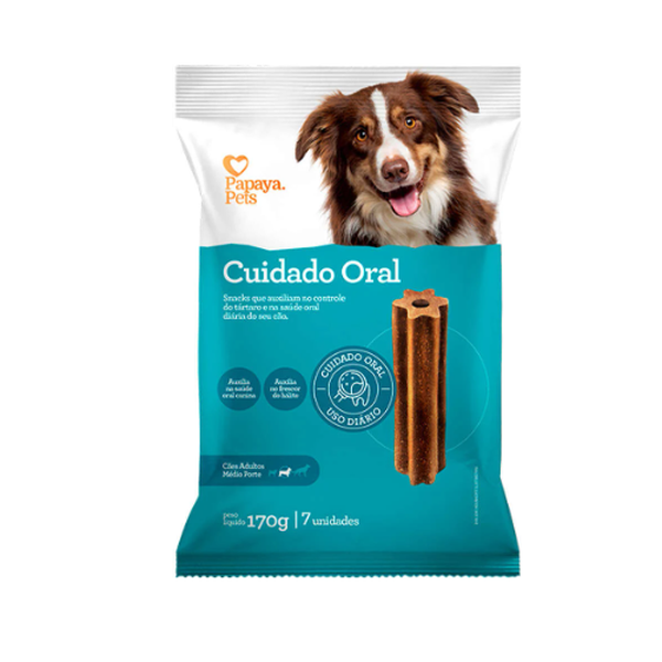 O Petisco Papaya Pets Cuidado Oral para Cães Adultos Porte Médio Sabor Frango é composto com ingredientes cuidadosamente selecionados e contêm hexametafosfato de sódio, que auxilia no controle do tártaro e na higiene oral dos cães. Além disso, sua textura e formato únicos incentivam a mastigação. Além disso, é um alimento muito saboroso e de fácil digestão sendo perfeitos como recompensa ou para momentos de diversão.